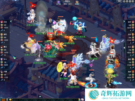 进入比赛后,花醉红尘(对战方)采用了“化生、咒师普陀、魔王、女儿、三扫大唐”组成的面伤阵容,这套阵容不仅可以通过大唐官府、魔王寨的伤害进行面伤压制,压倒之后就可以使用咒师普陀的紧箍咒来消耗对手九转,从而扩大自身优势。