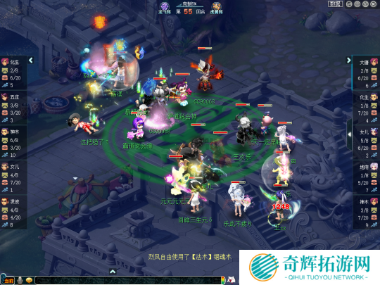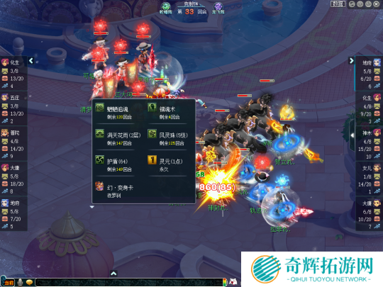 于是,生日快乐靠着大唐官府、神木林的输出优势,给曲阜孔庙带来了极大的召唤兽压力,并于第26回合成功点掉了曲阜孔庙大唐官府。