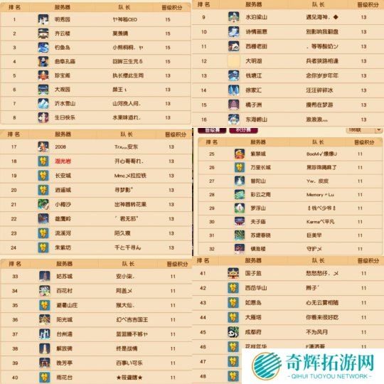 今天的武神坛晋级赛已经结束,晋级的48个服务器分别是: