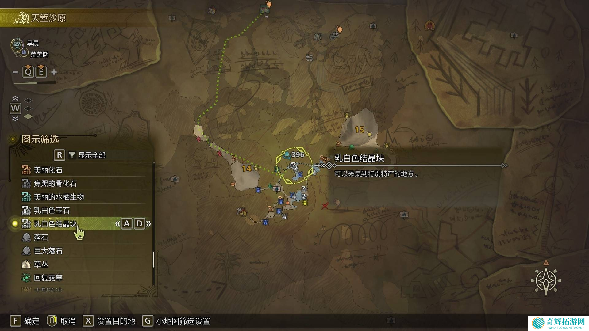 别忘了探索地图时,天堑沙原的区域14(地下水脉)固定会刷出稀有采集物【乳白色结晶块】,可以获得【历久大隆炉球】!