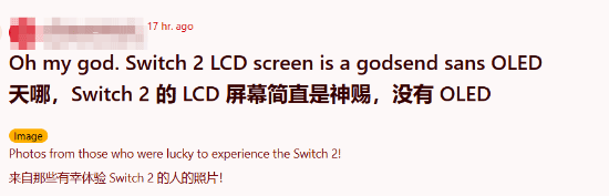 任天堂Switch 2线下体验会正在举行中,有玩家在Reddit论坛里晒出了两张Switch 2运行《塞尔达传说》与《马里奥赛车》的实机图片,说道:“Switch 2的LCD屏幕简直是天赐之物!”一起