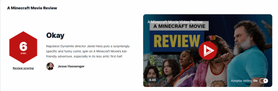 由知名游戏《我的世界》改编的同名真人电影内地定档4月4日,同步北美上映。本作的媒体评分现已解禁,IGN给出了6分的评价,认为《大人物拿破仑》的导演贾里德·赫斯为《我的世界》大电影这部适合儿童观看的冒险