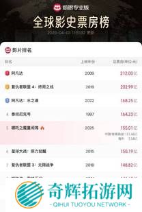 4月3日,根据网络平台数据显示,《哪吒之魔童闹海》全球票房(含预售)突破155亿元,暂列全球影史票房榜第5。中国电影再创新纪录!同时《哪吒之魔童闹海》出海票房超4894 2万美元,冲进国产电影出海榜前