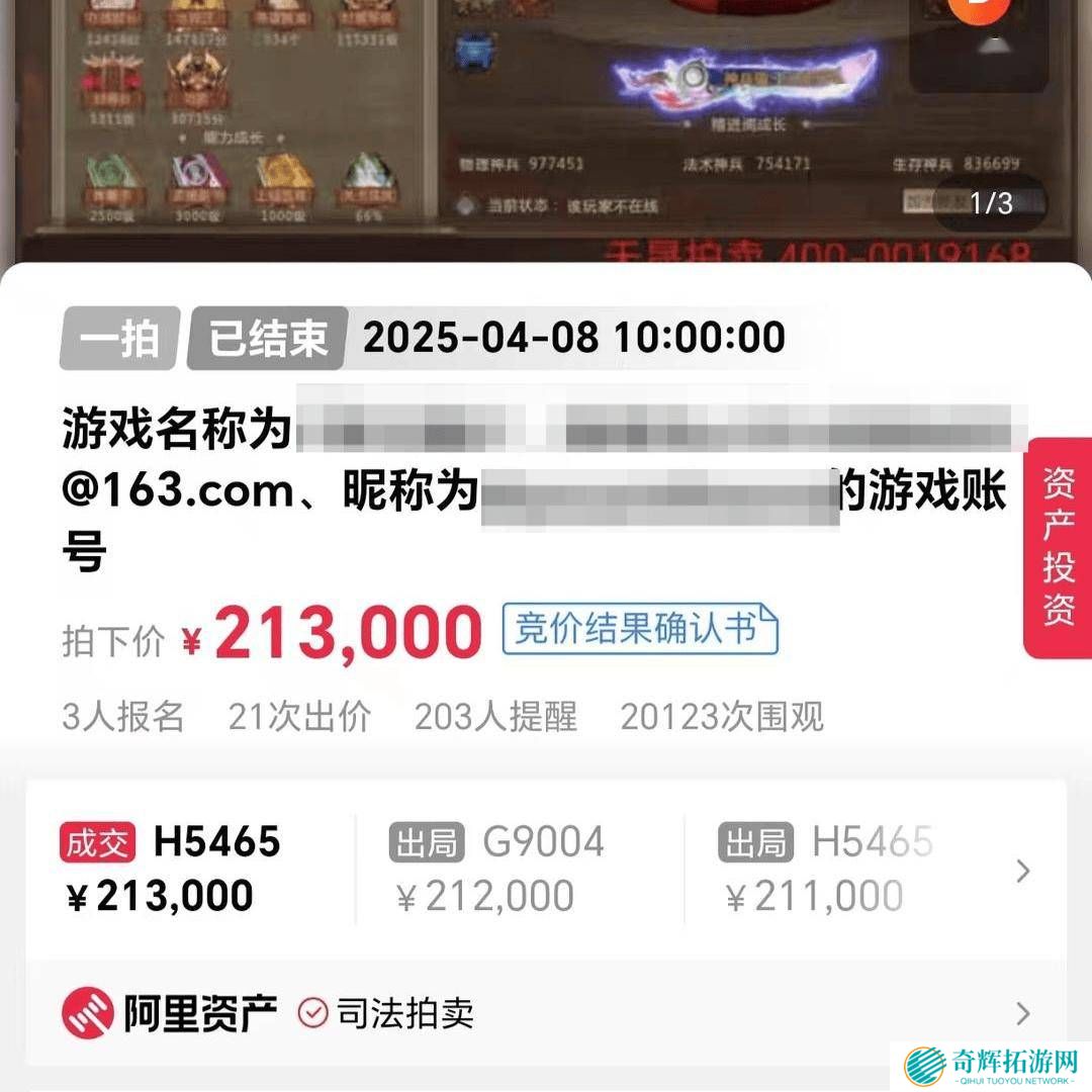 近日,一款名为《梦三国 2》的网络游戏中的顶级账号在阿里拍卖平台上引发了广泛关注。这个等级为“至尊 11”的账号,最终以21 3万元的高价成交,远超14万元的起拍价,同时也比市场价高出1 3万元。据了