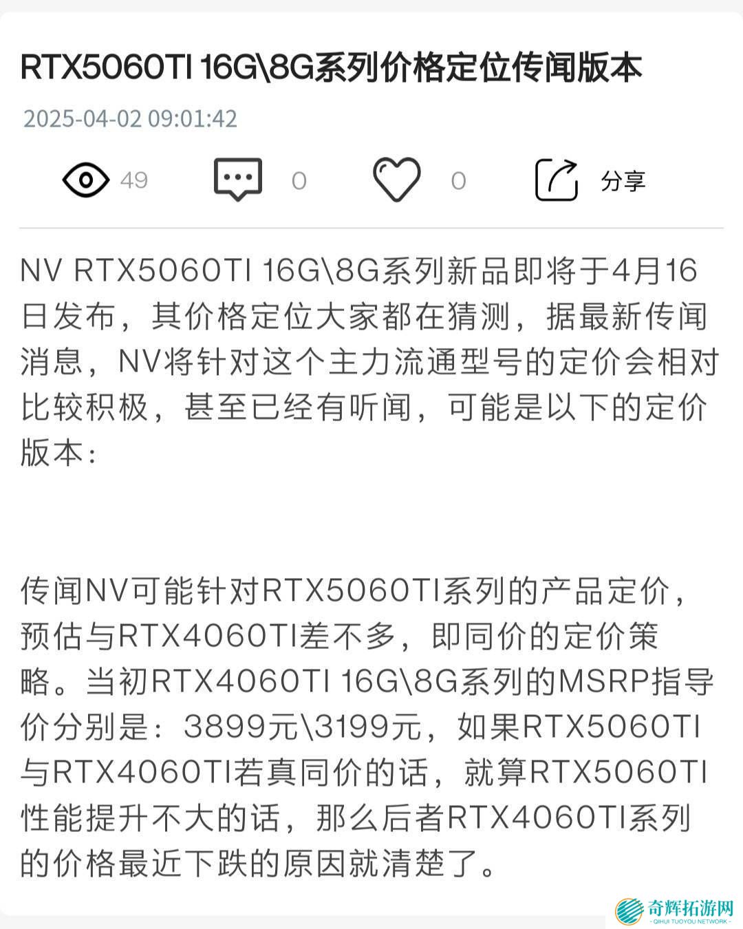 近期,据业内消息人士通过视博合聚平台透露,英伟达即将发布的GeForce RTX 5060 Ti系列显卡,在定价策略上或将延续其前代RTX 4060 Ti的步伐。这一消息引起了广泛关注。回顾2023年