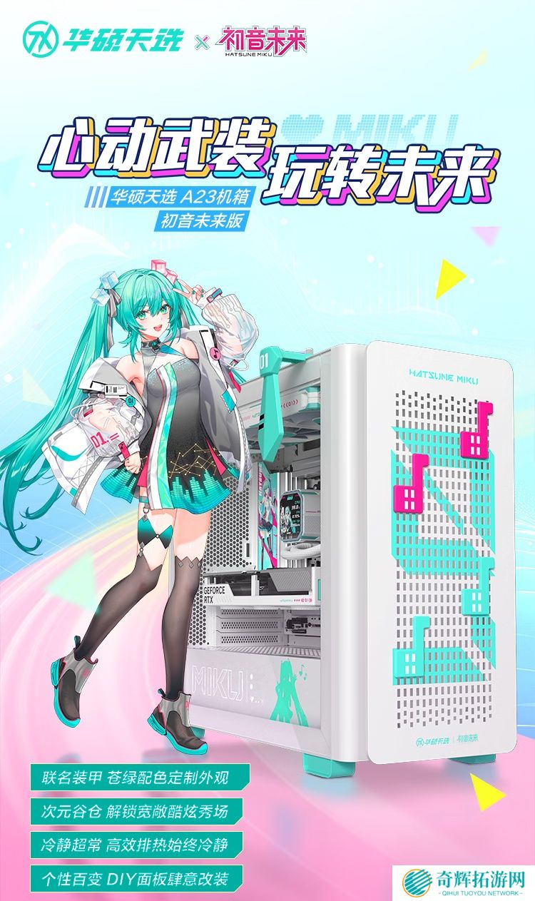 本站 4 月 11 日消息,华硕提前上架了“初音未来版”A23 机箱,具体细节将于明日公布。据华硕介绍,这款机箱采用了初音未来深度定制,包括定制 MIKU 剪影立绘、领带式样耳机挂架、洞洞板音符配饰以