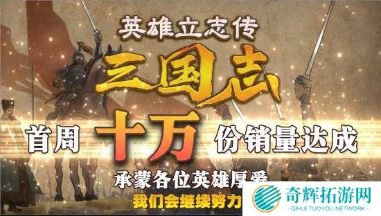 日前,国产单机RPG游戏《英雄立志传:三国志》官宣首周销量已突破10万份!官方发布贺图感谢玩家们支持。原文如下:感谢各路英雄对《英雄立志传:三国志》的支持与厚爱,游戏上线首周销量已经突破10万份!感谢