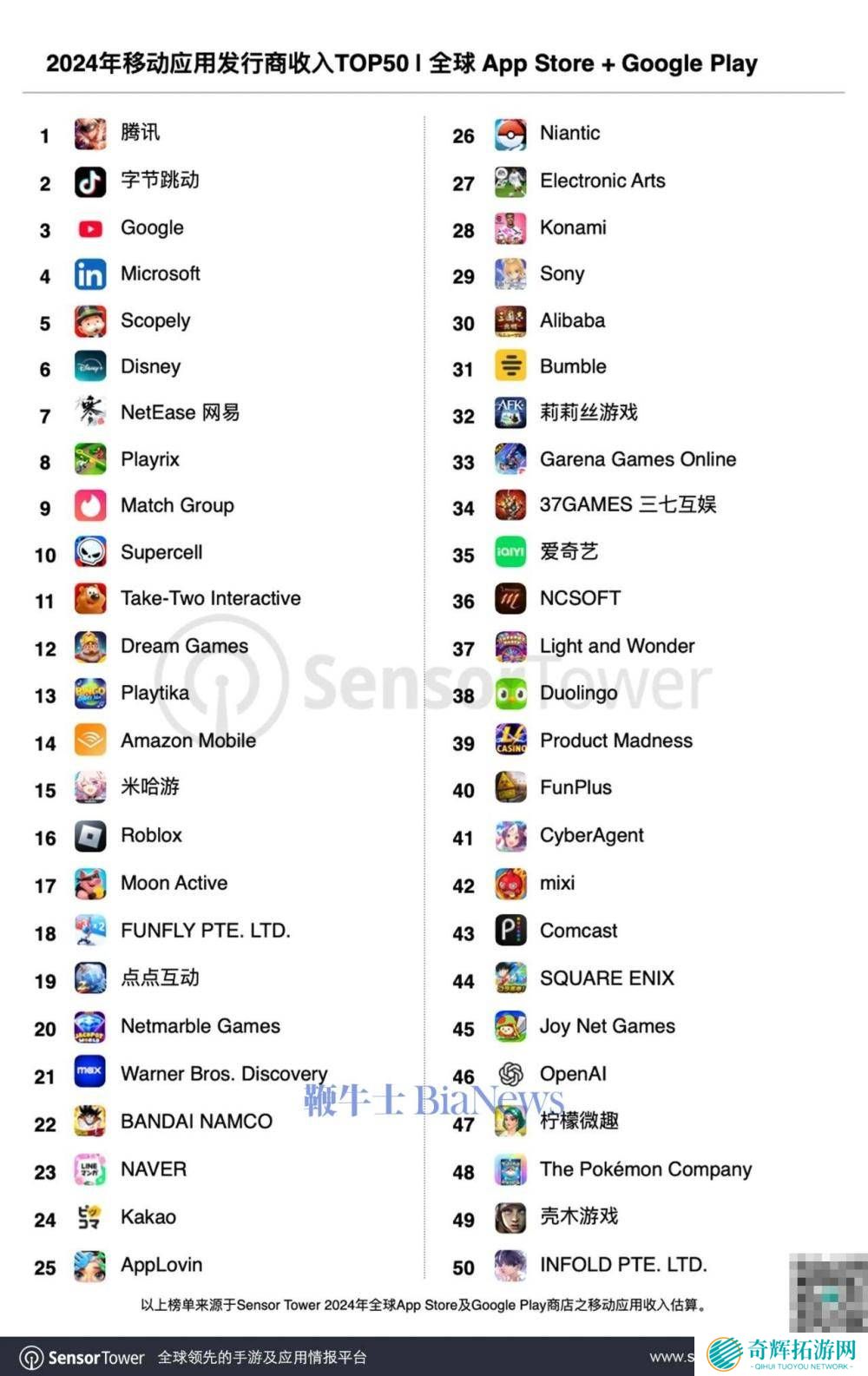 近日,全球移动应用市场的年度盛事再度上演,随着Sensor Tower权威发布的《2024年全球移动发行商收入TOP50》榜单揭晓,全球移动应用付费总额首次跨越1500亿美元大关,与前一年相比实现了1