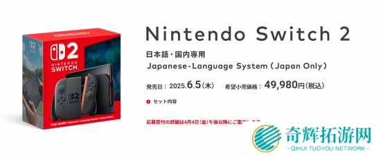 任天堂官网今日正式公开了NS2的售价:NS2日版将于今年6月5日发售,售价49980日元(约合人民币2429元);包含护航游戏《马里奥赛车:世界》的套装售价53980日元(约合人民币2623元)。此外