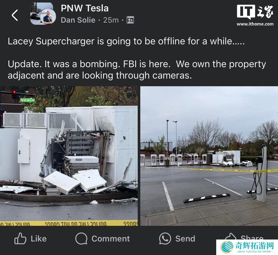 本站 4 月 9 日消息,本周,华盛顿州又发生了一起针对特斯拉超级充电站的破坏事件。此次事件似乎是一起爆炸事件,发生在夜间。本周二,特斯拉在其 X 平台的充电账号上表示,公司已与当地警方以及联邦调查局