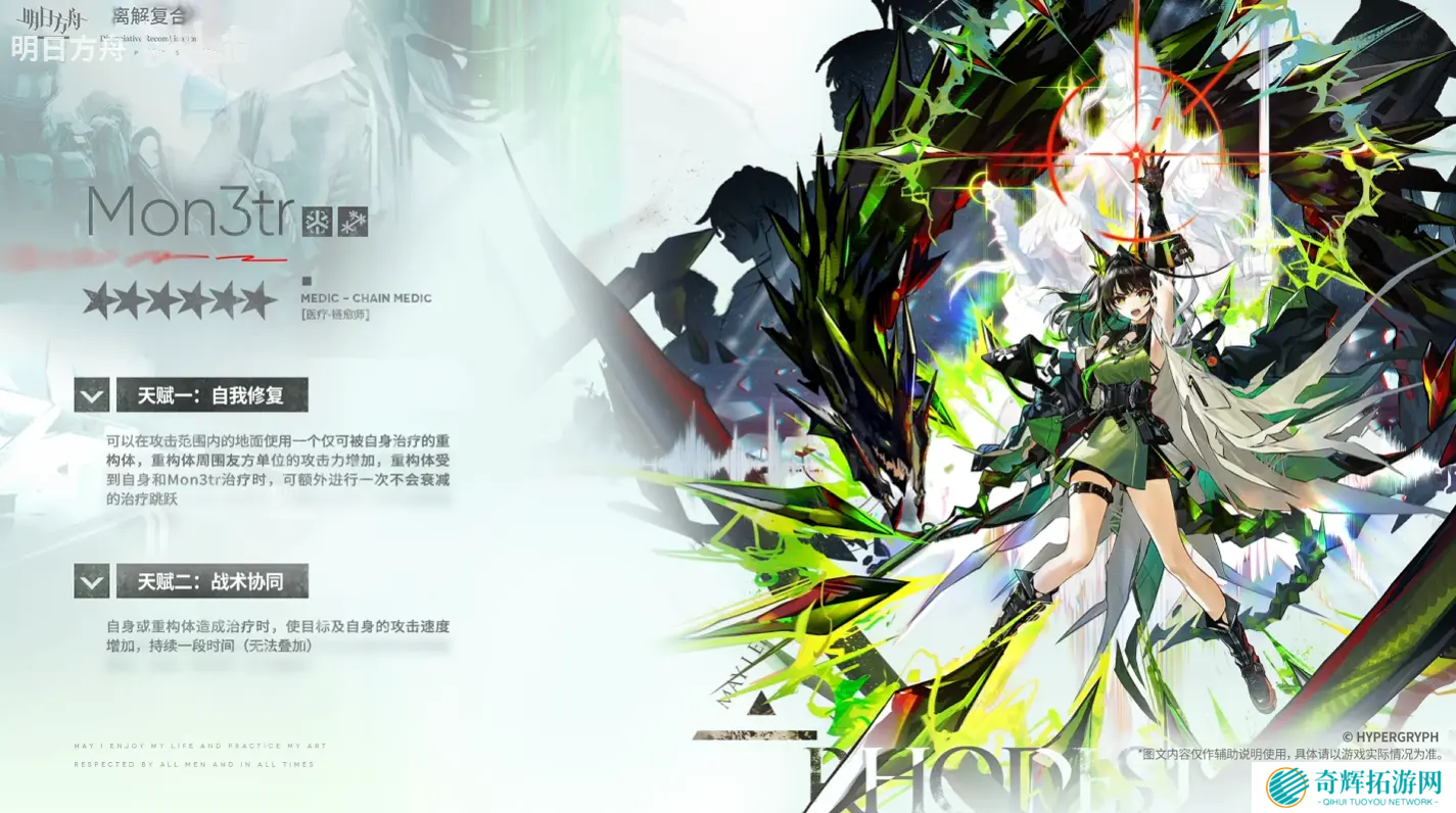 Mon3tr算是一位超强的干员,尤其是M3后,她的整体表现非常优秀。作为一位既能治疗又能输出的链愈师,Mon3tr在战斗中有着非常高的可操作性和战略价值。