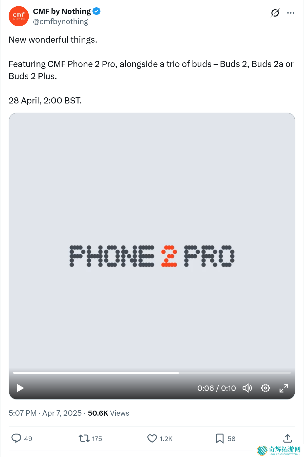 本站 4 月 8 日消息,Nothing 旗下子品牌 CMF 北京时间昨日宣布将于 BST 时间本月 28 日 2:00(本站注:北京时间 28 日 9:00)发布四款新硬件,包括 CMF Phone