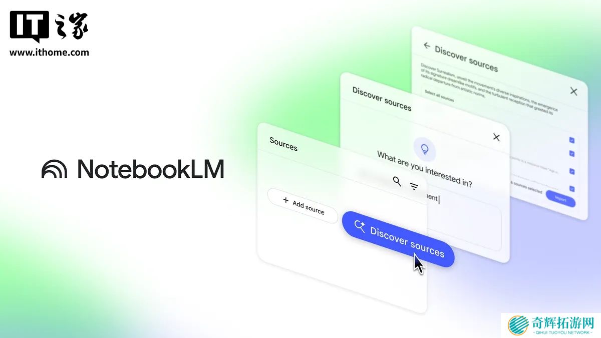 本站 4 月 3 日消息,谷歌旗下的人工智能笔记应用 NotebookLM 推出了一项令人眼前一亮的新功能 ——“发现资料”(Discover sources),这一功能的上线有望极大地提升学生和研究
