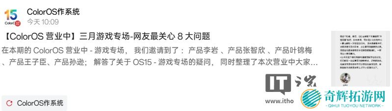 本站 4 月 2 日消息,ColorOS 官方今日在一加社区发布了最新一期《ColorOS 营业中 - 游戏专场》,回答了网友最关心 8 大问题,其中提到平板键盘的游戏键位映射功能正在开发,后续更新支