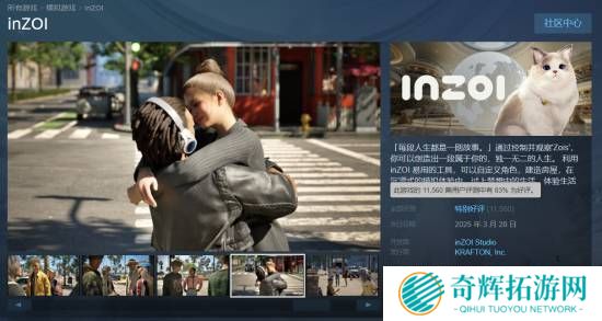韩国生活模拟类游戏《云族裔》于3月28日于Steam平台开启抢先体验,国区售价188元,目前本作的Steam评价等级为“特别好评”,11560篇评论中有83%的好评。Steam商店链接>>>目前《云族