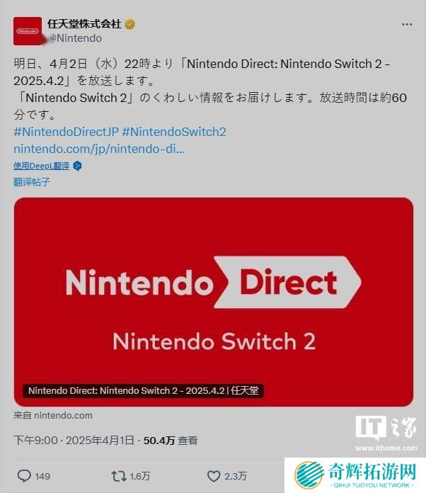 任天堂即将揭晓Switch 2的神秘面纱,一场备受期待的直面会定于北美东部夏令时间4月2日早上9点举行,换算至北京时间则为4月2日晚上9点。这场直面会预计将持续整整60分钟,为粉丝们带来一场视觉与信息