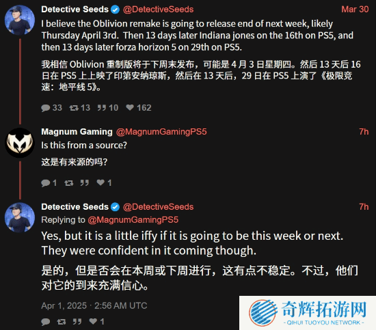 据X用户 Detective Seeds 的说法,《上古卷轴 4:湮灭》的重制版将于本周发布,具体日期很可能是是4月3日。该用户在帖子中声称这并非猜测,而是有可靠的消息来源。需要注意的是,截至目前,B