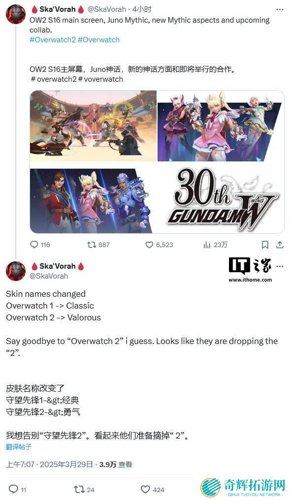 近日,Reddit社区中的一位用户揭示了《守望先锋 2》即将推出的S16赛季更新内容的部分细节,这些信息是通过解包游戏文件获得的。据这位用户透露,游戏文件中出现了一个特别的纪念Logo,庆祝《高达 W