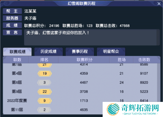 梦幻西游第11届帮派联赛结束后,来自朱紫坊服务器的【逍遥⊙永恒】逍遥永恒凭借出色的个人战术和集体凝聚力,战胜了实力强劲、队伍众多的【幻雪阁】