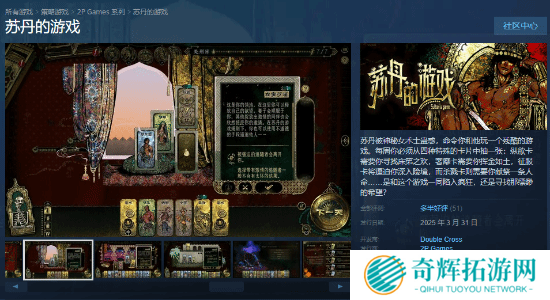 由Double Cross开发,2P Games发行的带卡牌元素的模拟+剧情游戏《苏丹的游戏》现已正式在Steam平台发售,游戏正举行首发优惠活动,原价80元,现价为72元,当前在Steam平台的评价
