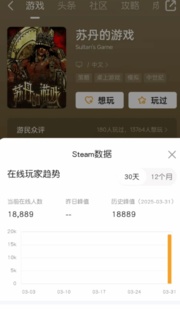由国人团队双头龙工作室开发、2PGames发行的叙事驱动卡牌RPG《苏丹的游戏》于今日在Steam平台正式发售。本作的在线玩家人数持续攀升,目前已逼近两万大关, 当前在线人数达到了 18,889人。另