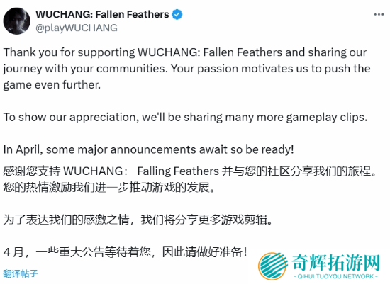 《明末:渊虚之羽》今日在推特上公布了两段全新的实机演示片段。视频:另外,官方也在推文中透露:“4月,一些重大公告等待着您,因此请做好准备!”视频画面:本文由本站制作发布,未经允许禁止转载。更多相关资讯