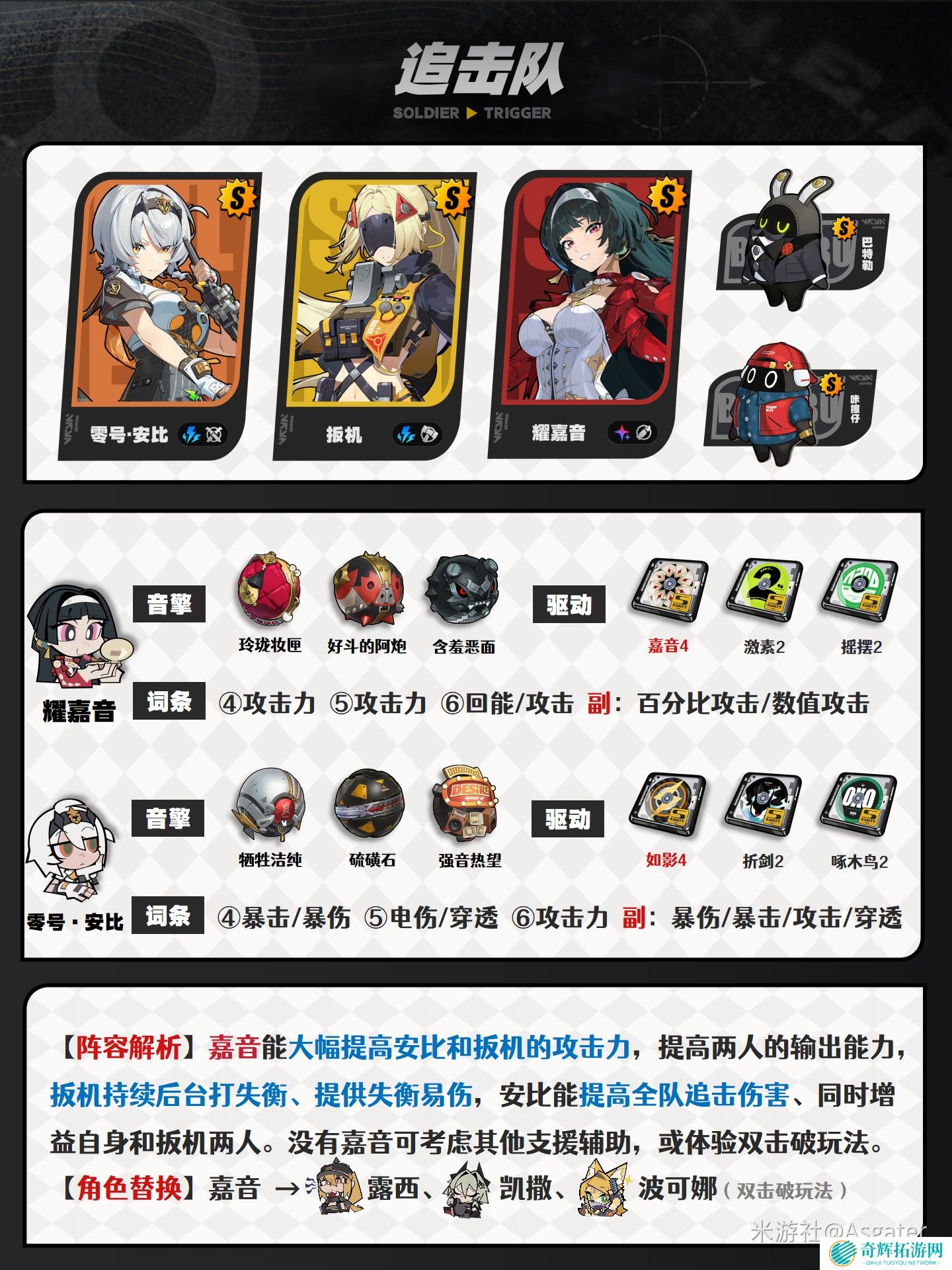 在绝区零1 6版本中,适合的搭配扳机能够很好地提升队伍的输出和生存能力。以下是不同定位角色的推荐扳机搭配方案,帮助玩家打造最优组合。