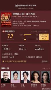 据猫眼电影报道,猫眼专业版数据,电影《封神第二部》3月31日结束公映,累计总票房12 25亿,总观影人次2395 9万,上映至今共打破4项纪录,获得75项里程碑成就。导演乌尔善发文,表示衷心感谢每一位