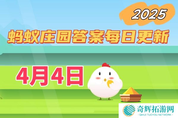 在支付宝的蚂蚁庄园中,每天回答问题都能获得饲料,用来喂养你的小鸡。那么,2025年4月4日的蚂蚁庄园答案是什么呢?赶紧来看看吧!