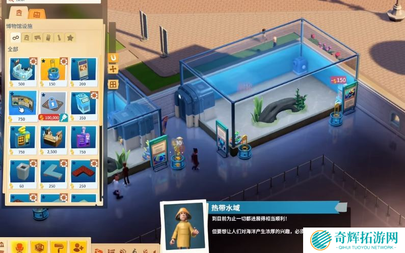 在双点博物馆中,水族馆是海洋生物展览的核心亮点。你可以从双点海域收集各种鱼类,并根据预算和布局自由打造属于自己的水族馆。不论是小巧精致的鱼缸,还是能容纳深海巨兽的大型水槽,都能为博物馆增添独特魅力。
