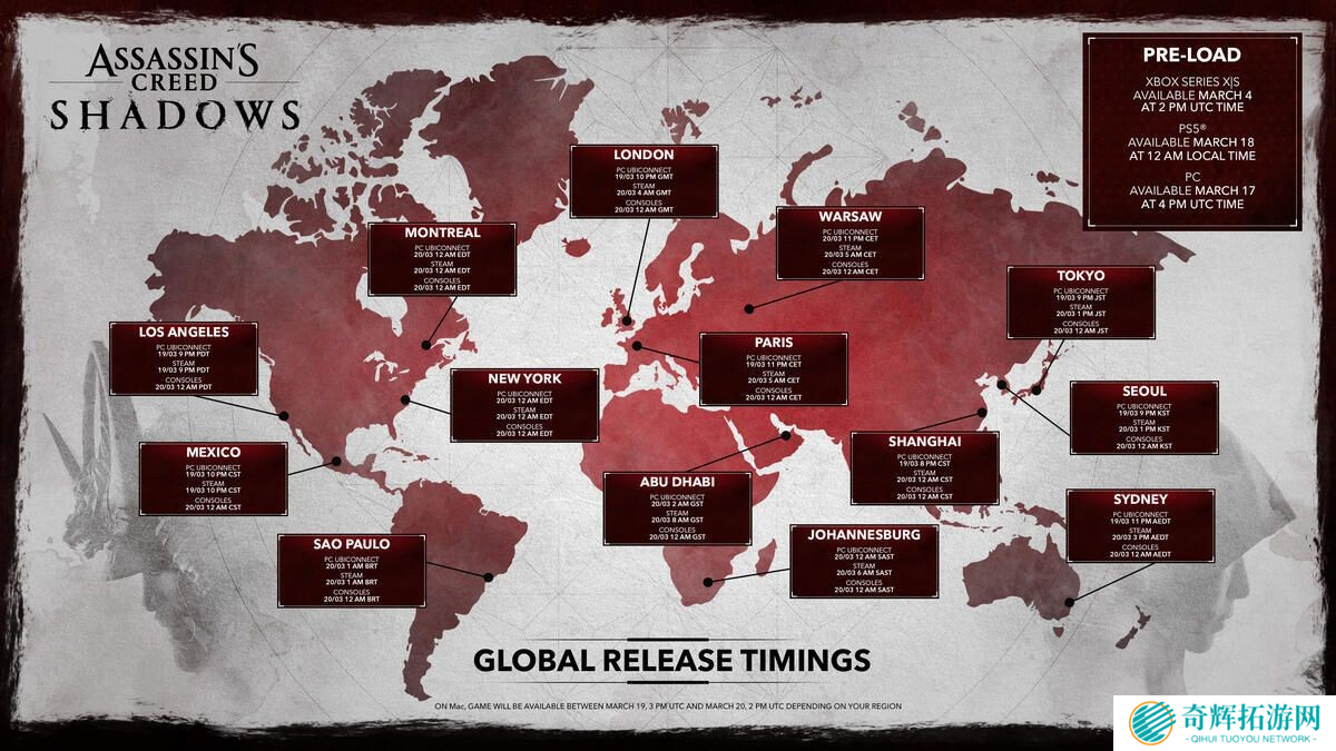 育碧今日正式公布了刺客信条影的全球解锁时间,无论是准备预载的玩家,还是期待首发解锁的刺客迷们,都可以提前做好准备!本作延续了起源、奥德赛、英灵殿的开放世界RPG风格,与2023年的幻景紧凑的动作冒险体