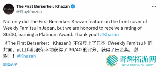 日前,游戏杂志《Fami通》为《第一狂战士:卡赞》给出了36分的评价,登入白金殿堂。今日,《第一狂战士:卡赞》官方在推特上发文,感谢了《Fami通》:“《第一狂战士:卡赞》不仅登上了日本周刊《Fami
