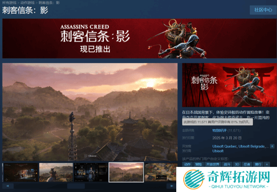 育碧最新作《刺客信条:影》现已发售一个星期,游戏当前在Steam平台的评价为“特别好评”,且好评率超过了80%,口碑较为出色。《刺客信条:影》标准版购买>>>《刺客信条:影》豪华版购买>>>据国外数据