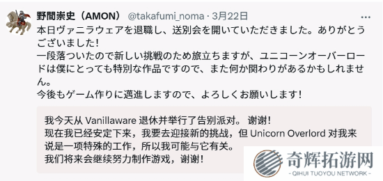 香草社知名战略角色扮演游戏《圣兽之王》的核心人物,游戏总监及角色设计师野间崇史,近日通过其个人社交平台宣布了一项重要决定:他已正式告别了这个伴随他多年成长的开发团队。为了庆祝也为了纪念这一时刻,香草社