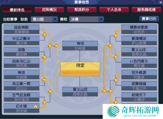 2024年6月21日,第二十二联帮派联赛冠军赛将准时打响,在本联帮派联赛走到最后的帮派,是来自台州湾的【神话】和曲阜孔庙的【聚义山庄】。