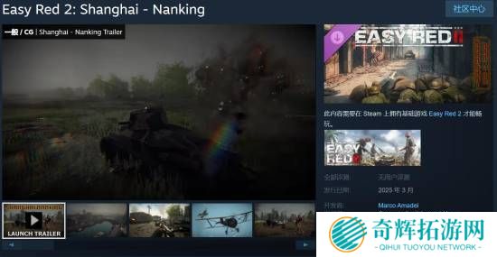 二战模拟FPS游戏《易红2》即将于3月28日推出“淞沪会战-南京保卫战”DLC。在该DLC中,玩家将参加第二次世界大战爆发前夕,日本侵华战争期间上海和南京的殊死决战。拿起武器保卫边疆,抵御日本帝国主义
