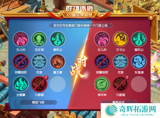 精锐组冠军:看图说话 禁选阶段,双方均禁用了对方的九黎城和阴曹地府。在精锐组中,九黎城的强势表现得淋漓尽致,而阴曹地府作为唯一能够限制九黎