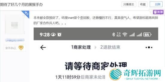 手办厂inart最近的风波引发热议。黑神话贴吧有玩家发帖吐槽,自己期待了好几个月的黑猴手办,本来都已经全款预订了,无奈因为制造商做错事,并且直播时态度傲慢恶劣,还是选择了退款。希望游科以后能找别家合作