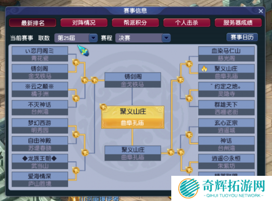 昨日,梦幻西游第25届帮派联赛决赛正式落幕,【聚义山庄】依靠强大的执行力和过硬的队伍实力,2:1击败【铸剑阁】,拿到了期望已久的联赛冠军。下