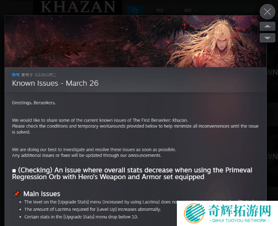 近日,《第一狂战士:卡赞》的开发商Neople发布了一则公告,表示他们注意到了游戏内的一个重大bug,并分析了导致该问题的原因以及临时解决方法。如果玩家正在装备能为所有属性提供+5加成的“英雄武器和盔