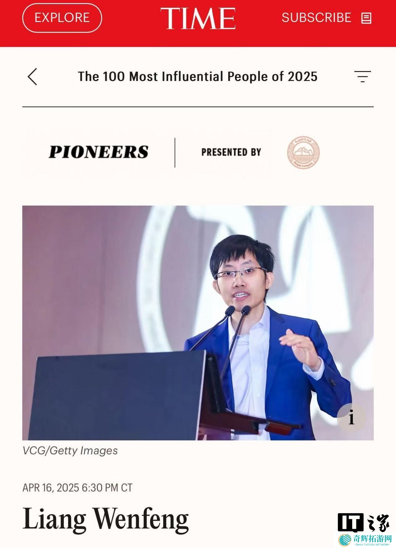 感谢本站网友 風見暉一 的线索投递! 本站 4 月 18 日消息,美国《时代》周刊日前公布了“2025 年全球最具影响力 100 人”名单,DeepSee
