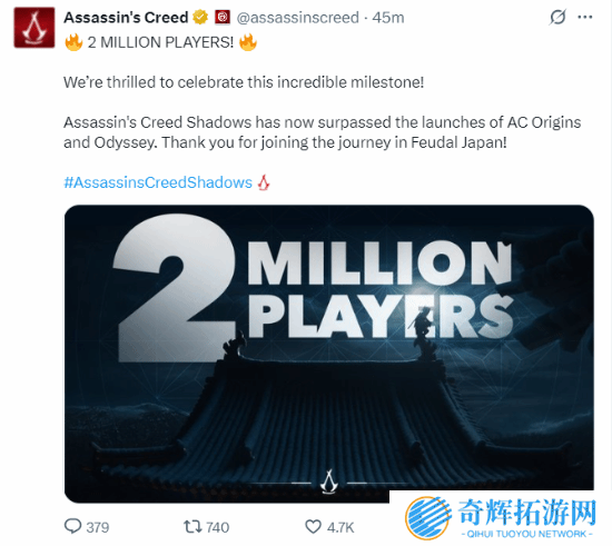 育碧官方宣布,《刺客信条:影》玩家数已突破200万人,这一成绩超过了《刺客信条:起源》和《刺客信条:奥德赛》的首发表现。截止发稿,本作在Steam平台同时在线峰值人数达到5 5万人。收录6007篇玩家