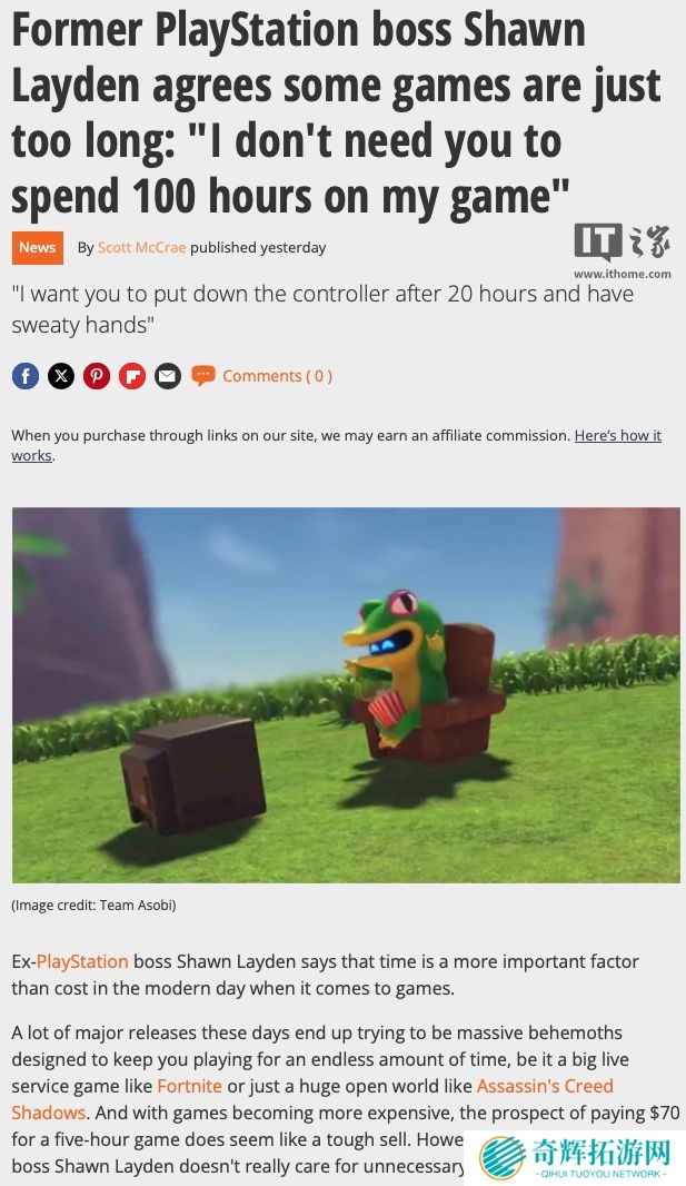 本站 4 月 18 日消息,SIE(索尼互动娱乐)前高管 Shawn Layden 近日接受 Player Driven 专访时表示,随着玩家年龄增长,冗长流程的现代游戏对他们的吸引力正在逐渐减弱。在