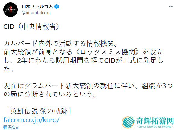 今日,Falcom官方推特公布了《英雄传说:黎之轨迹》CID(中央情报省)角色集结图。此外还顺便为玩家们介绍了这个组织的相关背景,下面就一起来了解下吧。《黎之轨迹》繁体中文版将于2021年冬季发售(日