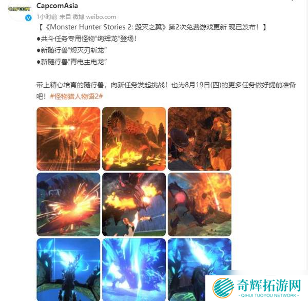 时隔近一个月后,《怪物猎人物语2:破灭之翼(Monster Hunter Stories 2:Wings of Ruin)》第二弹免费更新在今日(8月5日)正式发布,系列正传中的“绚辉龙”作为共斗任务