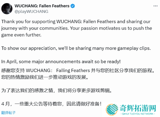 此前我们曾报道过,国产类魂游戏《明末:渊虚之羽》近日在推特接连公布了多段实机演示,并发文透露,4月份会发布一些重大消息!根据贴吧网友的分享,近日《明末:渊虚之羽》制作人夏思源在B站私信回答问题时透露,