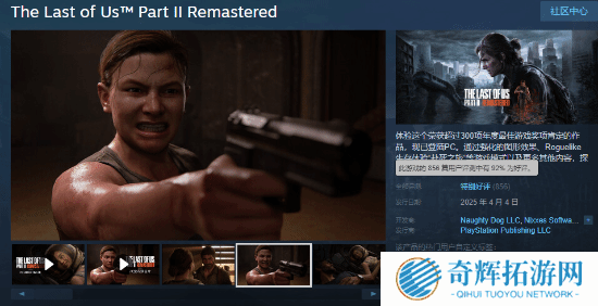 《最后生还者2:复刻版》已在Steam平台正式发售,国区售价345元。截至发稿,游戏共收录856篇玩家评测,好评率达到92%(特别好评)。热度方面,游戏上线不到九个小时,峰值同时在线人数达到23350