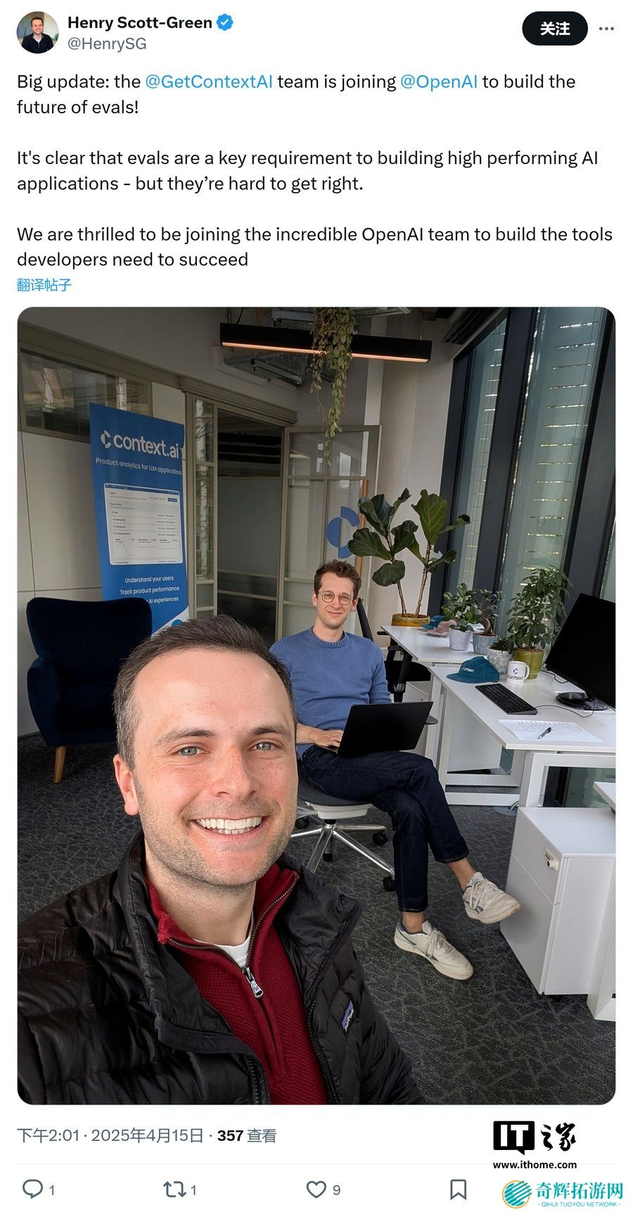 本站 4 月 16 日消息,科技媒体 maginative 今天(4 月 16 日)发布博文,报道称 OpenAI 宣布收购 Context ai 团队,后者是一家由 GV 支持的初创公司,以评估和分